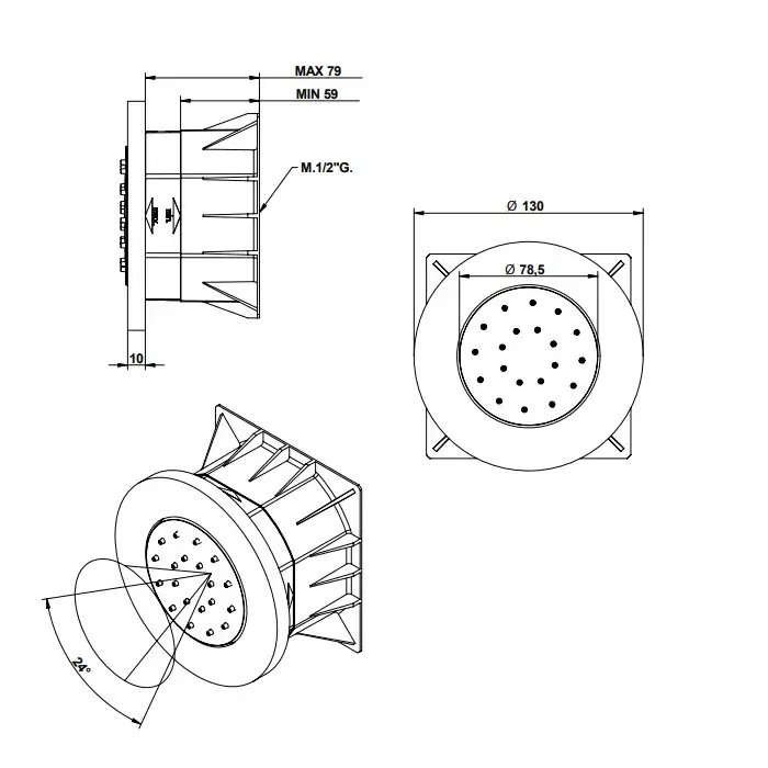 Bongio Soffioni Боковой душ круглый, цвет золото 00867ORNR