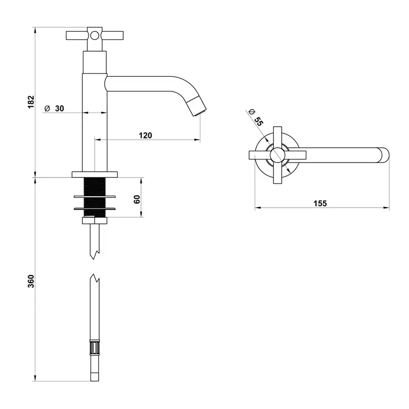 Bongio T Cross Смеситель встраиваемый для раковины, на 3 отв., излив 22 см, цвет: хром 30438CR22EU