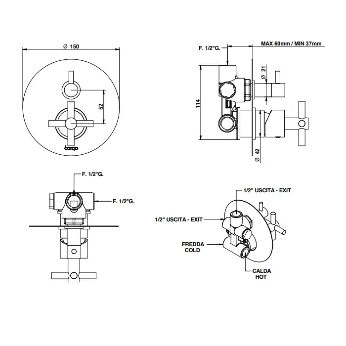 Bongio T Cross Встраиваемый термостатический смеситель для душа, цвет хром 30544CR00