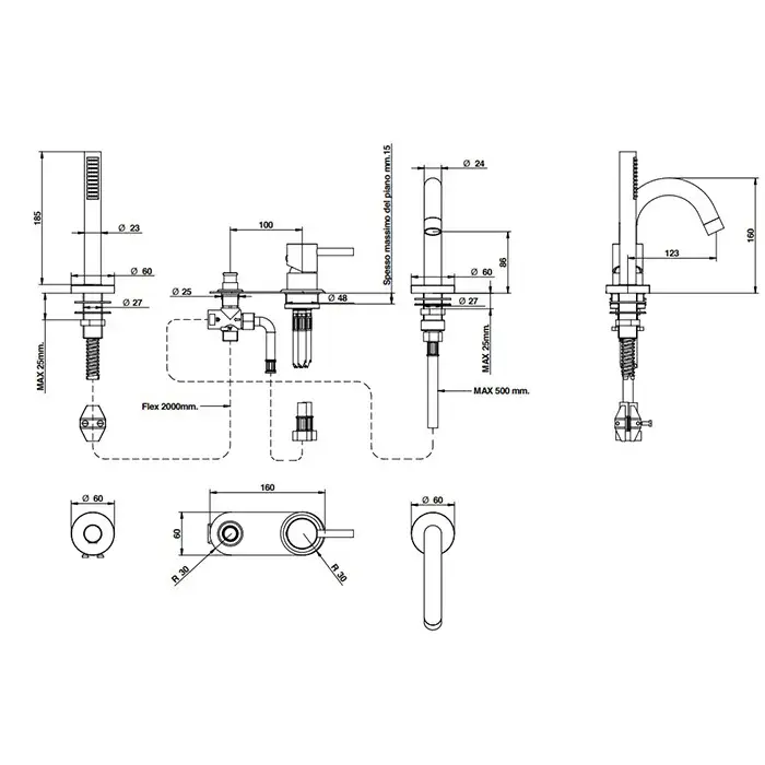 Bongio T Mix Смеситель для ванны на три отверстия, устанавливаемый на борт, цвет хром 32531CR0DPR