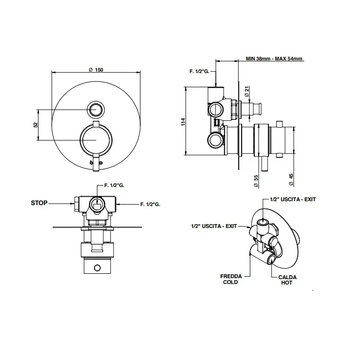 Bongio T Mix Встраиваемый термостатический смеситель для душа, цвет золото 32549ORPR