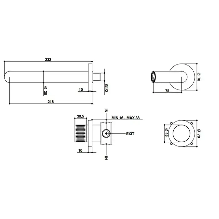 Bongio Time 2020 Смеситель встраиваемый для раковины из стены 22 см, нержавеющая сталь 70539AS00