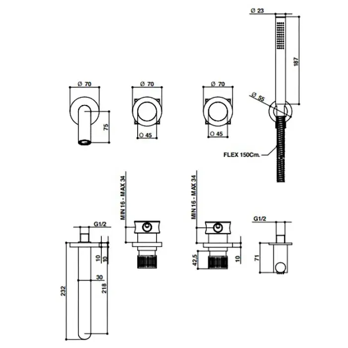 Bongio Time 2020 Душевой гарнитур: штанга, лейка, шланг, из нержавеющей стали, цвет: матовая сталь 70870AS00