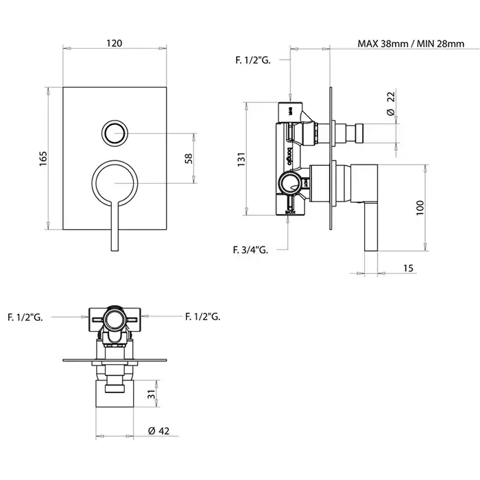 Bongio Tmix15 Встраиваемый смеситель для раковины, цвет хром 08538CRPR