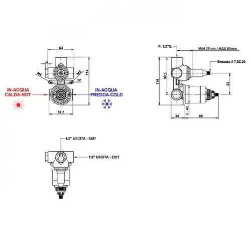 Bongio Внутренняя часть смесителя для душа на 3 выхода 097630003