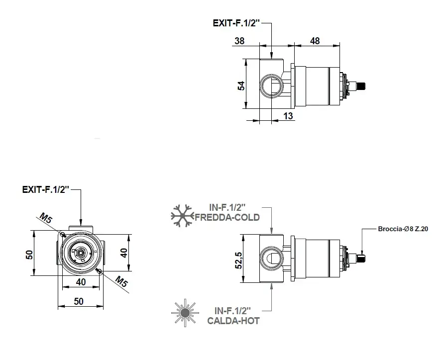 Bongio Внутренняя часть смесителя для душа на 2 выхода 097630000