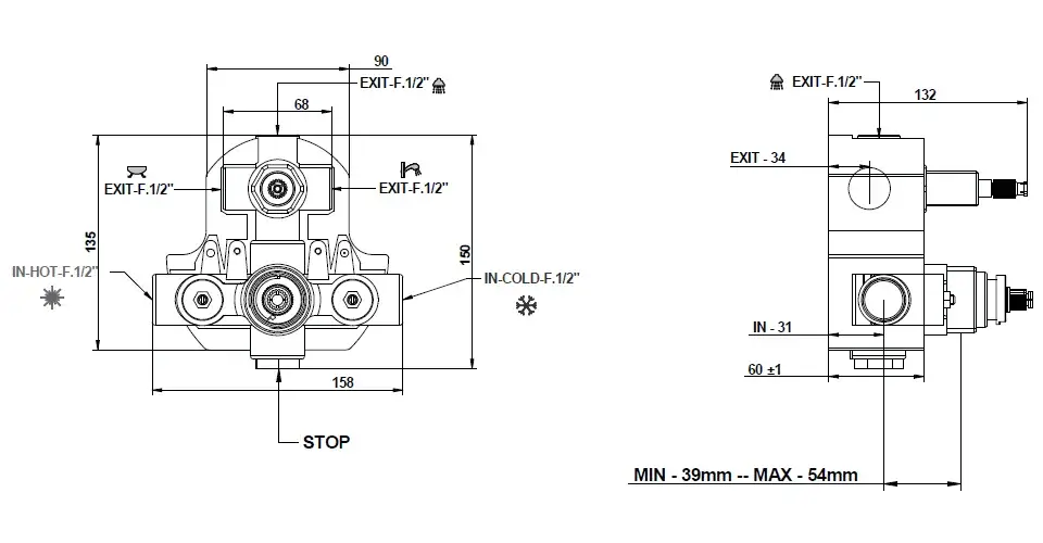 Bongio Внутренняя часть смесителя для душа на 2 выхода 097630000