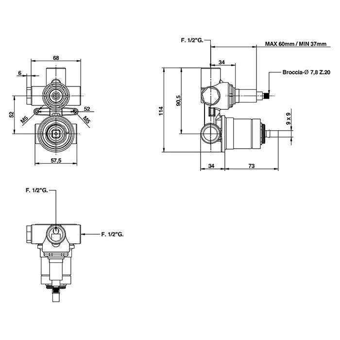 Bongio Внутренняя часть смесителя для душа на 3 выхода 097630003