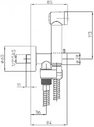 Bossini Alexa-Brass Гигиенический душ с запорным вентилем, без смесителя, цвет: chrome E57001B.030