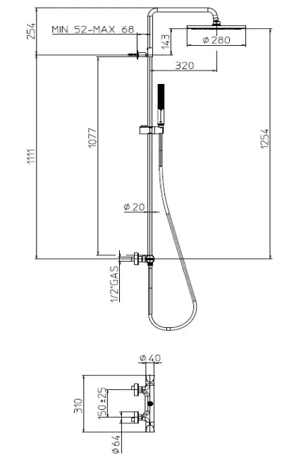 Bossini Apice Душевая стойка: смеситель, ручной и верхний душ, 2 вида струи, шланг, цвет: mat black L10508.073