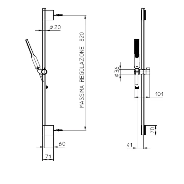Bossini Apice Душевой гарнитур: штанга для душа с ручным душем и шлангом 150см., цвет: хром