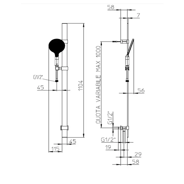 Bossini Apice Душевой гарнитур: штанга с подводом воды, ручной душ, шланг, цвет: mat black D48086.073