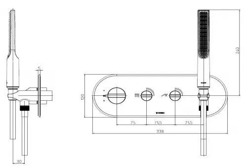 Bossini Apice Смеситель для душа, настенный, термостатический, цвет: черный матовый