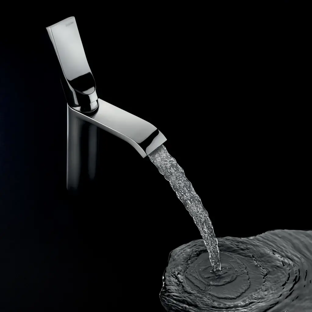 Bossini Aki Line Смеситель для раковины AKI-T высокий с донным клапаном 1"1/4 и гибкая подводка из нерж. стали 3/8"., цвет: хром