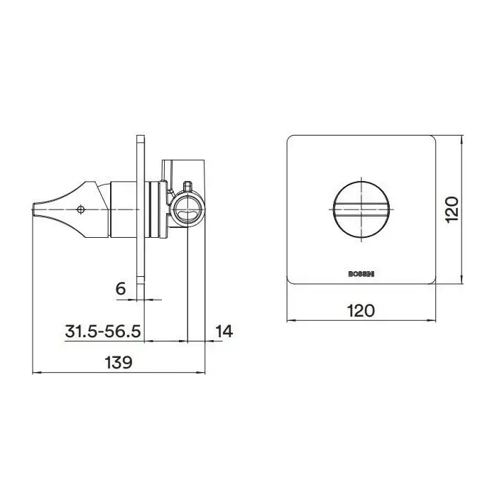 BOSSINI APICE Смеситель для душа встраиваемый, на 1 выход (внешняя часть), цвет Брашированный никель