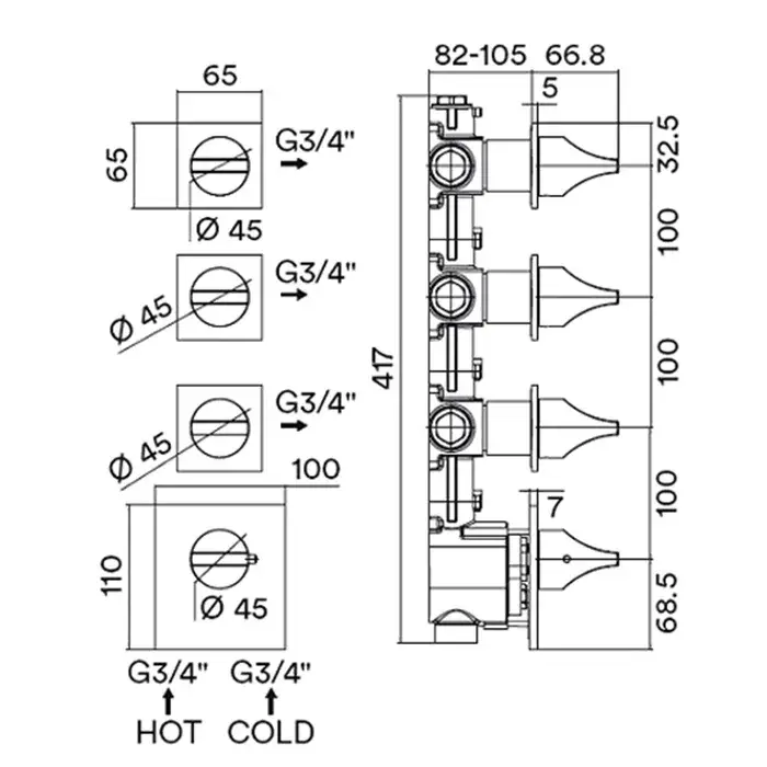 Bossini Apice Смеситель для душа встраиваемый, термостат., 3 запорных вентиля, цвет: mat black Z035205.073
