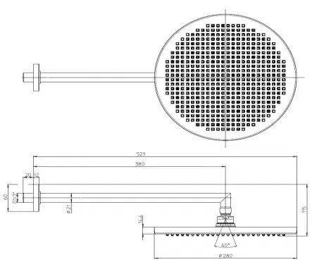 Bossini Apice Верхний душ d28 см, 1 вид струи, кронштейн настенный 38 см, цвет: satin nickel H70430I.094
