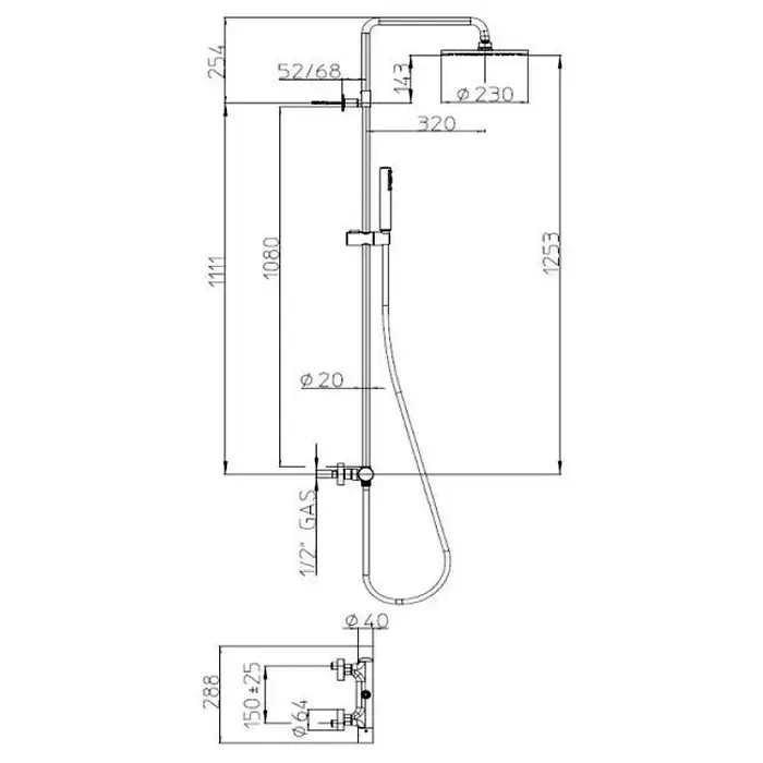 Bossini Настенная колонна - Душ COSMO Ø 230 mm - ручной душ ZEN -, смеситель механический наружный с интегрированным переключением - черньій матовый