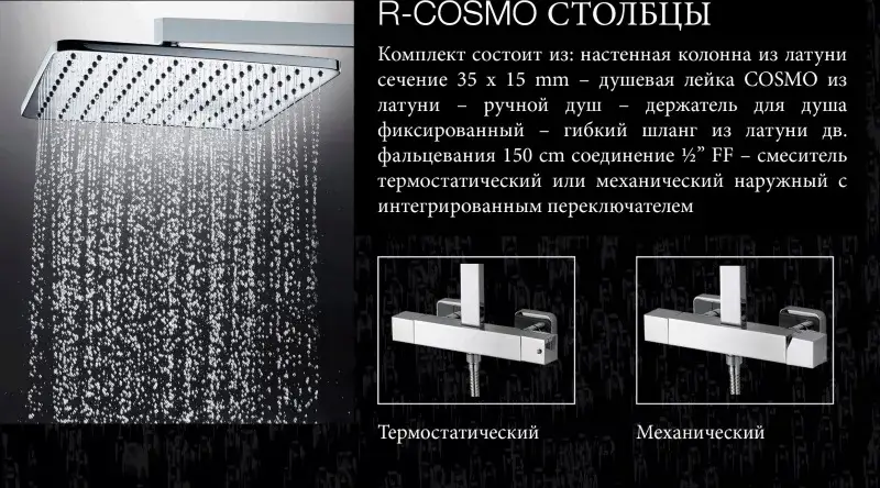 Bossini Cosmo Душевая стойка: смеситель, ручной и верхний душ, 1 вид струи, шланг, цвет: chrome L40001.030