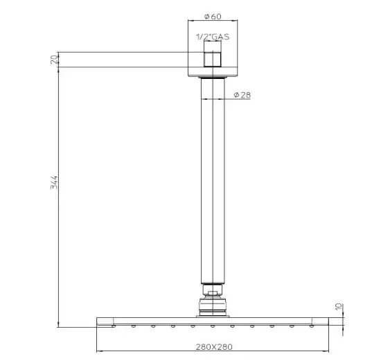 Bossini Cosmo Верхний душ 28 см, 1 вид струи, с потолочным кронштейном 30 см, цвет: mat black H30598G.073