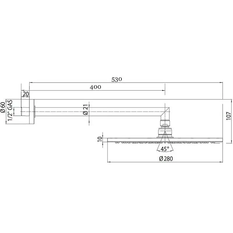 Bossini Cosmo Верхний душ 28 см, 1 вид струи, кронштейн настенный 35 см, цвет: chrome H69598I.030