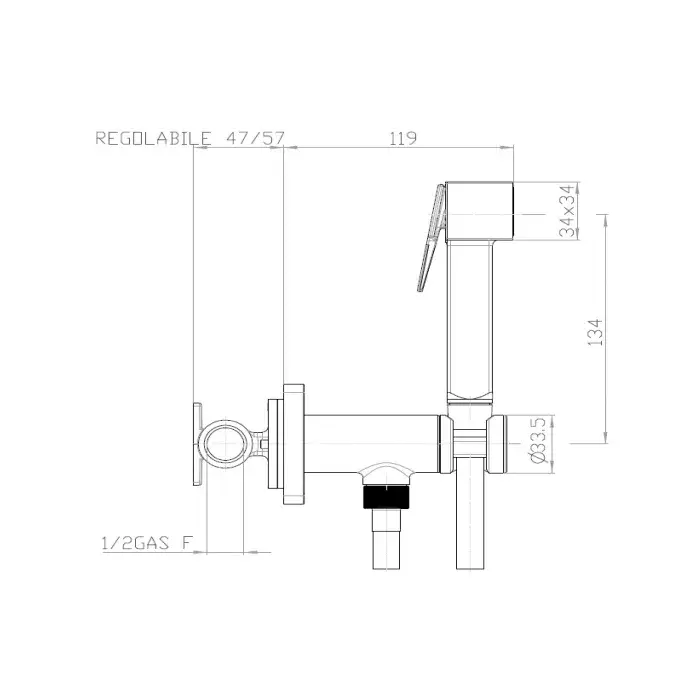 Bossini Cube Гигиенический душ с прогрессивным смесителем, 1 вид струи, шланг 125 см, цвет: chrome E38003B.030