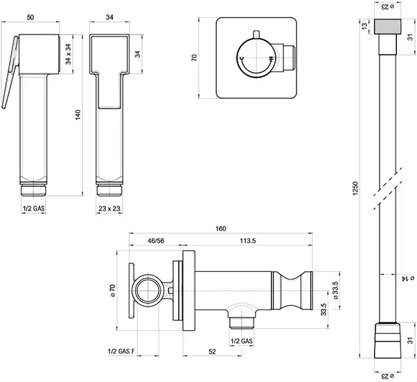 Bossini Cube Гигиенический душ с прогрессивным смесителем, шланг 125 см, цвет: mat black E38003B.073