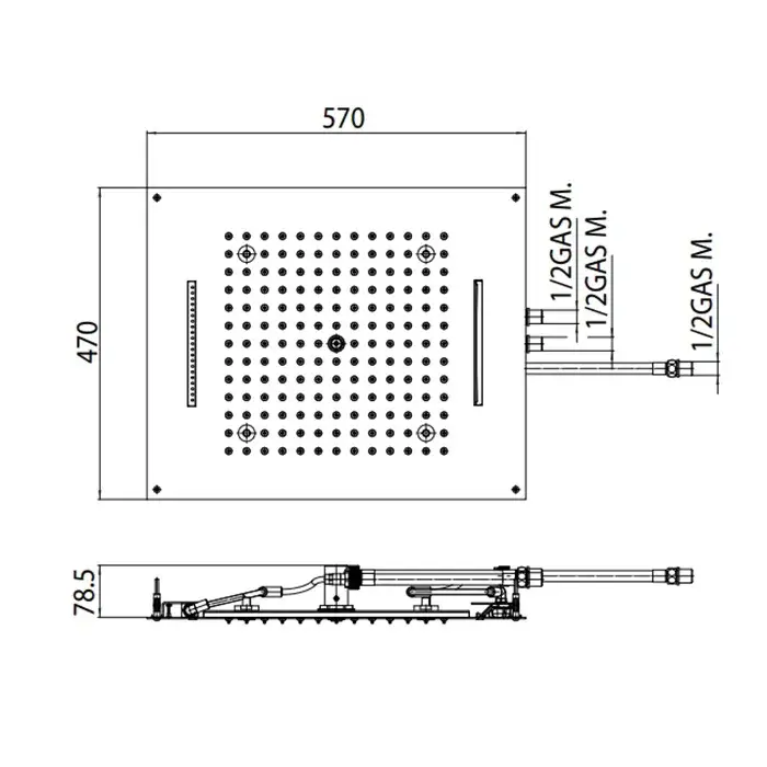 BOSSINI DREAM-RECTANGULAR Верхний душ 570x470 мм, с 12 LED RGB, блок питания/управления, Cromoterapia, цвет: хром