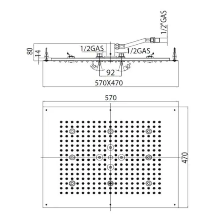 BOSSINI DREAM-RECTANGULAR Верхний душ 570x470 мм, с 12 LED RGB, блок питания/управления, Cromoterapia, цвет: хром