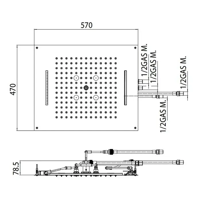 BOSSINI DREAM-CUBE Верхний душ 470 x 470 мм, с 8 LED RGB, блок питания/управления, Cromoterapia, гибкая подводка, цвет: хром