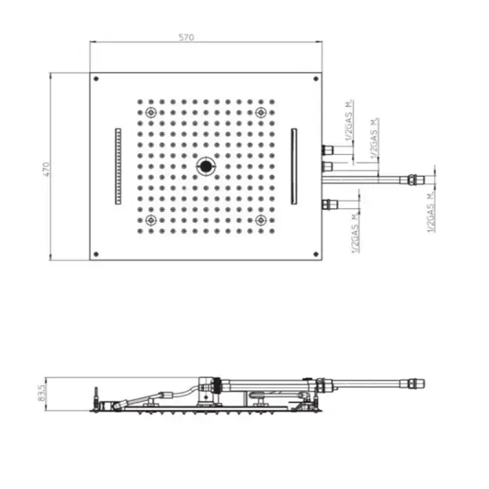 BOSSINI DREAM/2 Верхний душ 570 x 470 мм, 2 режима (дождь, каскад), с 4 LED (белый), блок питания/управления, цвет: белый матовый