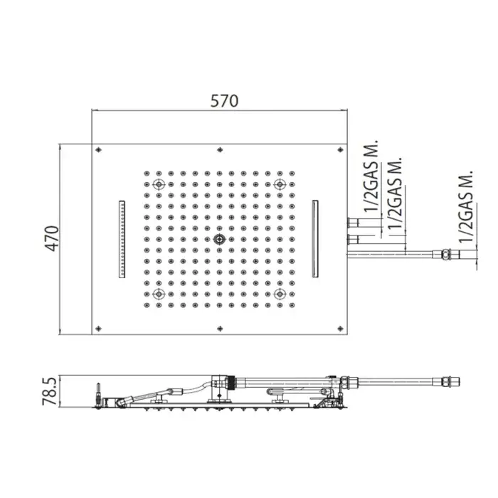 BOSSINI DREAM-RECTANGULAR Верхний душ 570x470 мм, с 12 LED RGB, блок питания/управления, Cromoterapia, цвет: хром