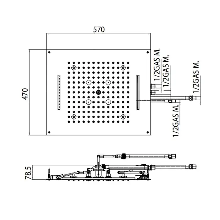 BOSSINI DREAM-CUBE Верхний душ 470 x 470 мм, с 8 LED RGB, блок питания/управления, Cromoterapia, гибкая подводка, цвет: хром