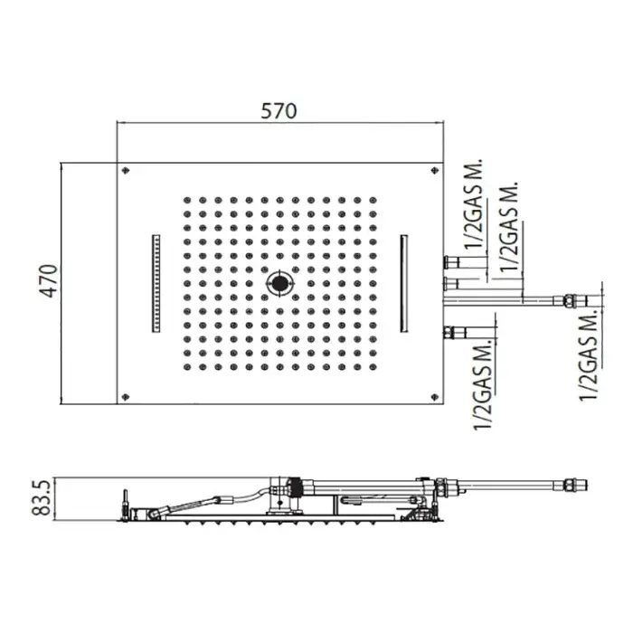 BOSSINI DREAM-RECTANGULAR Верхний душ 570x470 мм, с 12 LED RGB, блок питания/управления, Cromoterapia, цвет: хром