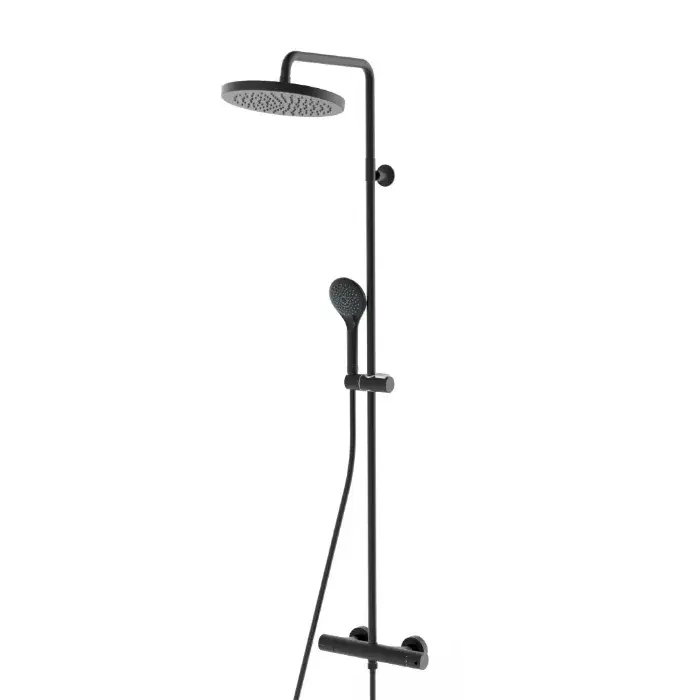 Bossini Elios Душевая стойка: смеситель, ручной и верхний душ, 1 вид струи, шланг, цвет: mat black L10172.073