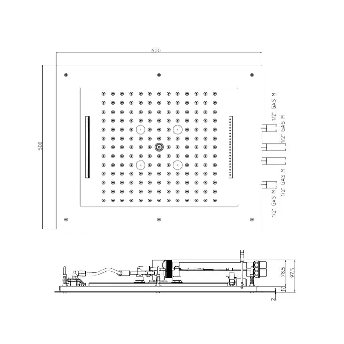 Bossini Frame Верхний душ 60х50 см, встраиваемый в потолок, 4 режима, хромотерапия, цвет: chrome HI0928.030