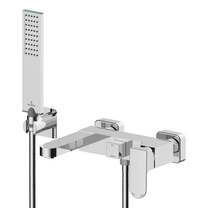 BOSSINI GILLO Комплект наружный для ванной GILLO, лейка Flat-one, Душевой держатель фиксированный из латуни, шланг из латуни 125 см.., цвет хром