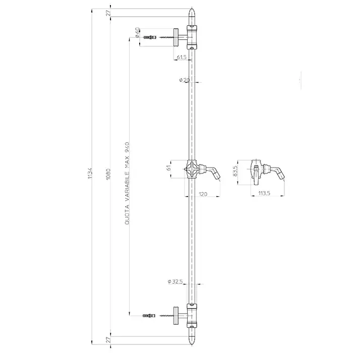 Bossini Liberty Душевая штанга 113,4 см, цвет: antique brass, bronze D19000.022