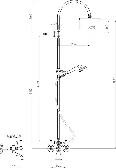 Bossini Liberty Душевая стойка: смеситель, ручной и верхний душ, 1 вид струи, шланг, цвет: chrome L01203.030