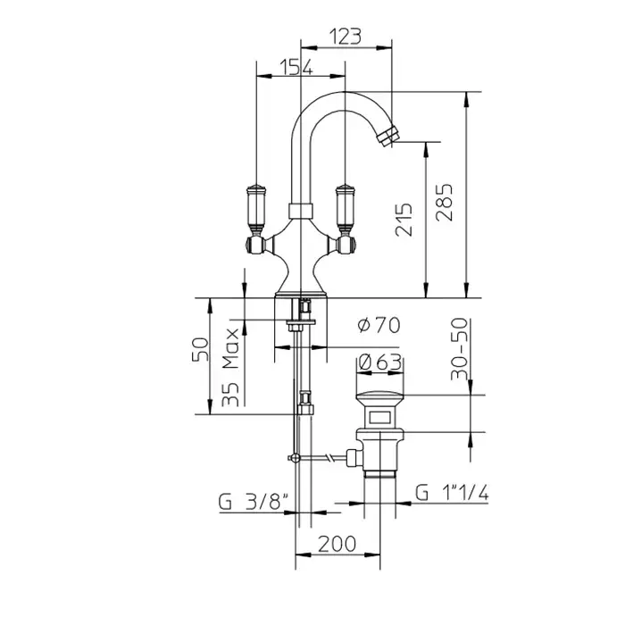 Nicolazzi Liberty Смеситель для раковины, на 3 отверствия, с донным клапаном, цвет: хром