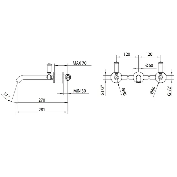 Nicolazzi Liberty Смеситель для раковины настенный, на 3 отв, излив: 177мм, цвет: хром