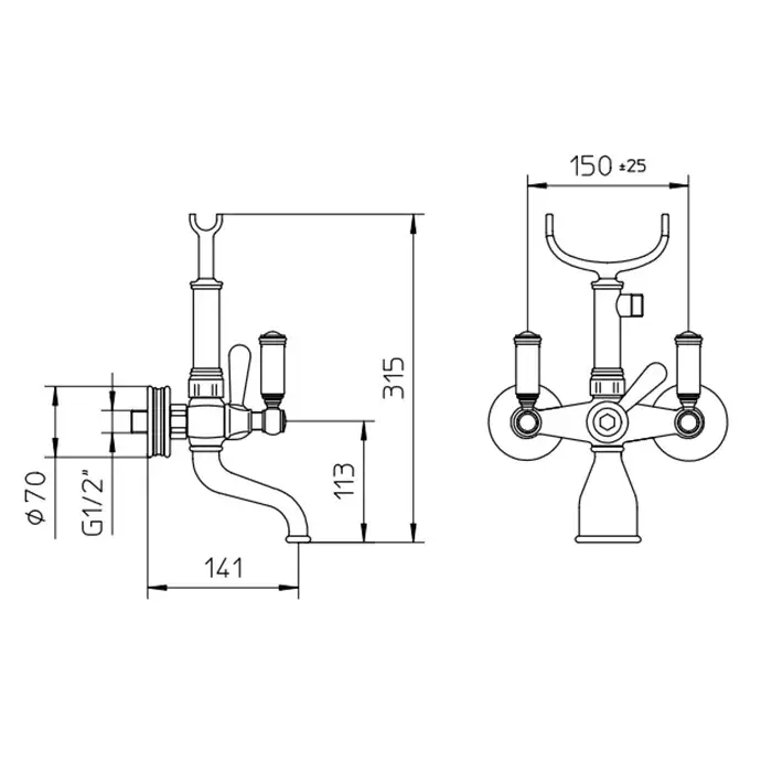 Nicolazzi Liberty Смеситель для раковины настенный, на 3 отв, излив: 177мм, цвет: хром