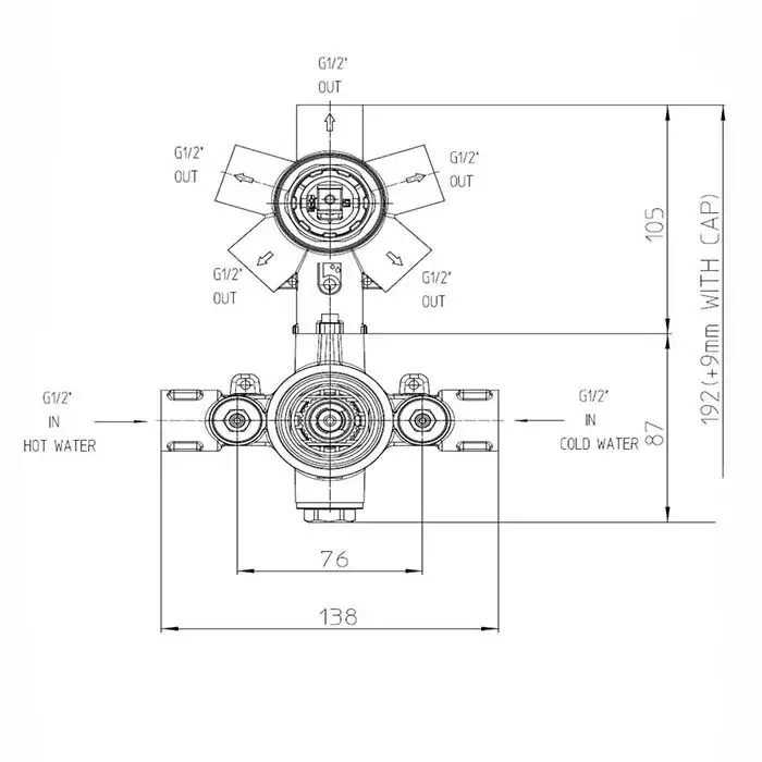 Bossini Liberty Смеситель термостатический, встраиваемый, с девиатором, цвет: chrome Z00068.030