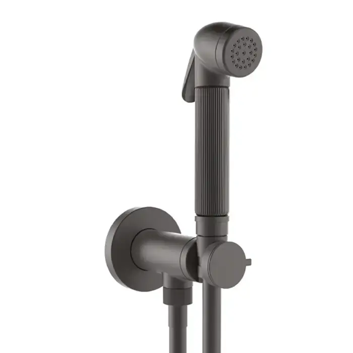 Bossini Cube Brass Гигиенический душ с прогрессивным смесителем, лейка металлическая, шланг Cromolux, цвет: черный матовый