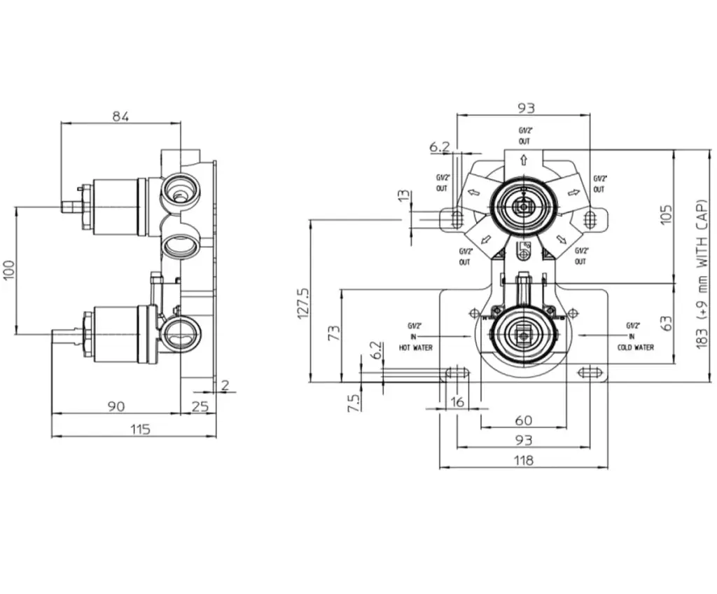 Bossini Nobu Встраиваемая часть рычажного смесителя на 2 потребителя INZ222