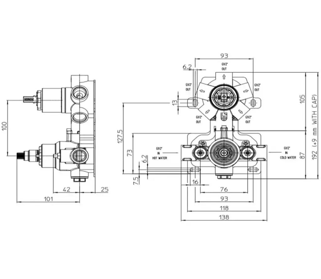 Bossini Nobu Встраиваемая часть термостатического смесителя на 5 потребителей Z90125