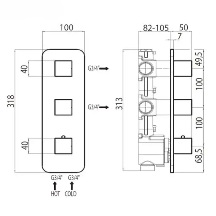 Bossini Oki Смеситель термостатический, на 2-4 потребителя, уст-ка верт./гор., цвет: chrome Z031204.030