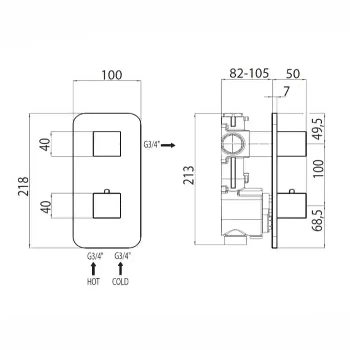 Bossini Oki Смеситель термостатический, встраиваемый, с девиатором, запорным вентилем, цвет: chrome Z031202.030