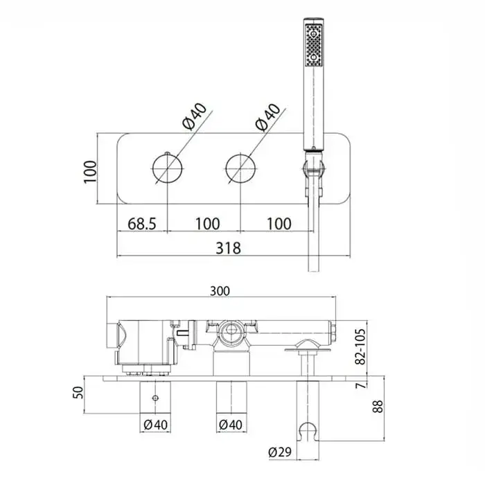 Bossini Oki Термостат высокой пропускной способности с девиатором, на 2 потребителя, цвет: chrome Z005351.030