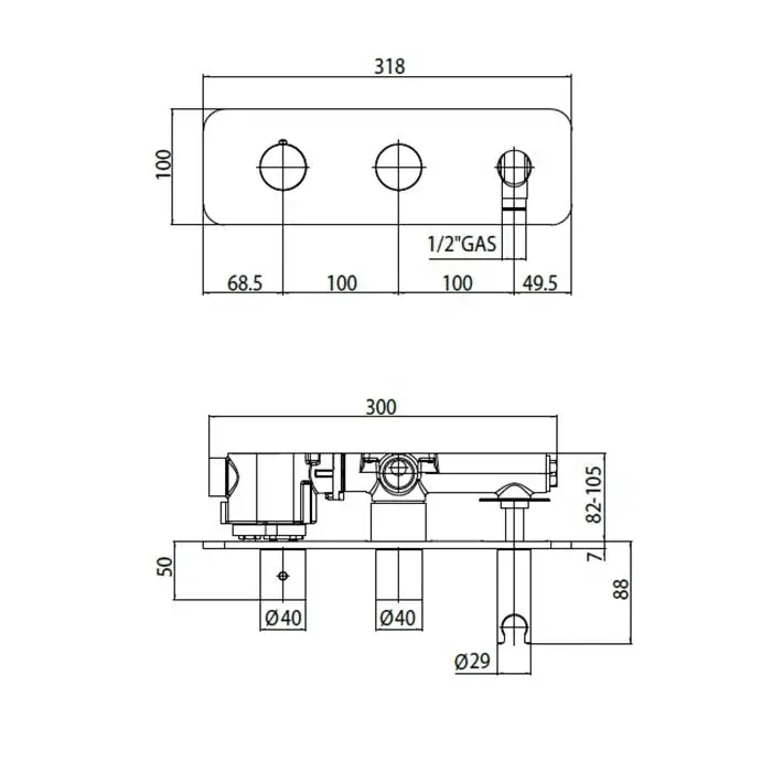 Bossini Oki Термостат высокой пропускной способности с девиатором, на 2 потребителя, цвет: chrome Z005350.030